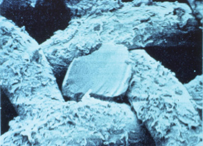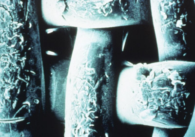 | Damaged mesh from abrasion. |