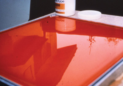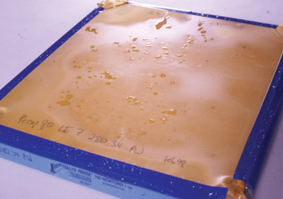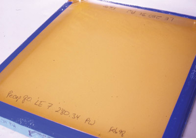 Wetting agents are essential for a stencil film’s good adhesion, although many stencil technicians report that they also improve its coating ability for liquid emulsions. With stencil film, you can use either a degreaser with a wetting agent or separate degreaser and wetting agent. Generally, if water sheets smoothly across the mesh, even liquid emulsions with about 60 percent water will flow and sheet better. If water is repelled from the screen mesh, it will flow in little rivulets and form droplets on the mesh. Degreasers with wetting agents include Autotype Universal Mesh Prep, Fujifilm Sericol Xtend XMP-AC (Aqua Coat), Ulano Magic Mesh Prep, KIWO Dual Prep, Easiway Mesh Preparation, Chemical Consultants Liqua-Prep and Prep-Rite and the new KIWO Ultra Prep.
